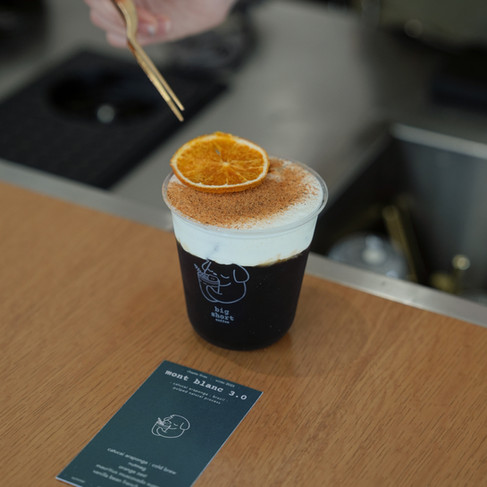 our mont blanc is one of our best selling drinks from the start and this will be the third version we are refining. each menu we keep tweaking and playing with the ingredients and recipe. this time we improved the coffee to have an even better flavour profile and enhance the cream and technique by changing to a french cream and improving the process.